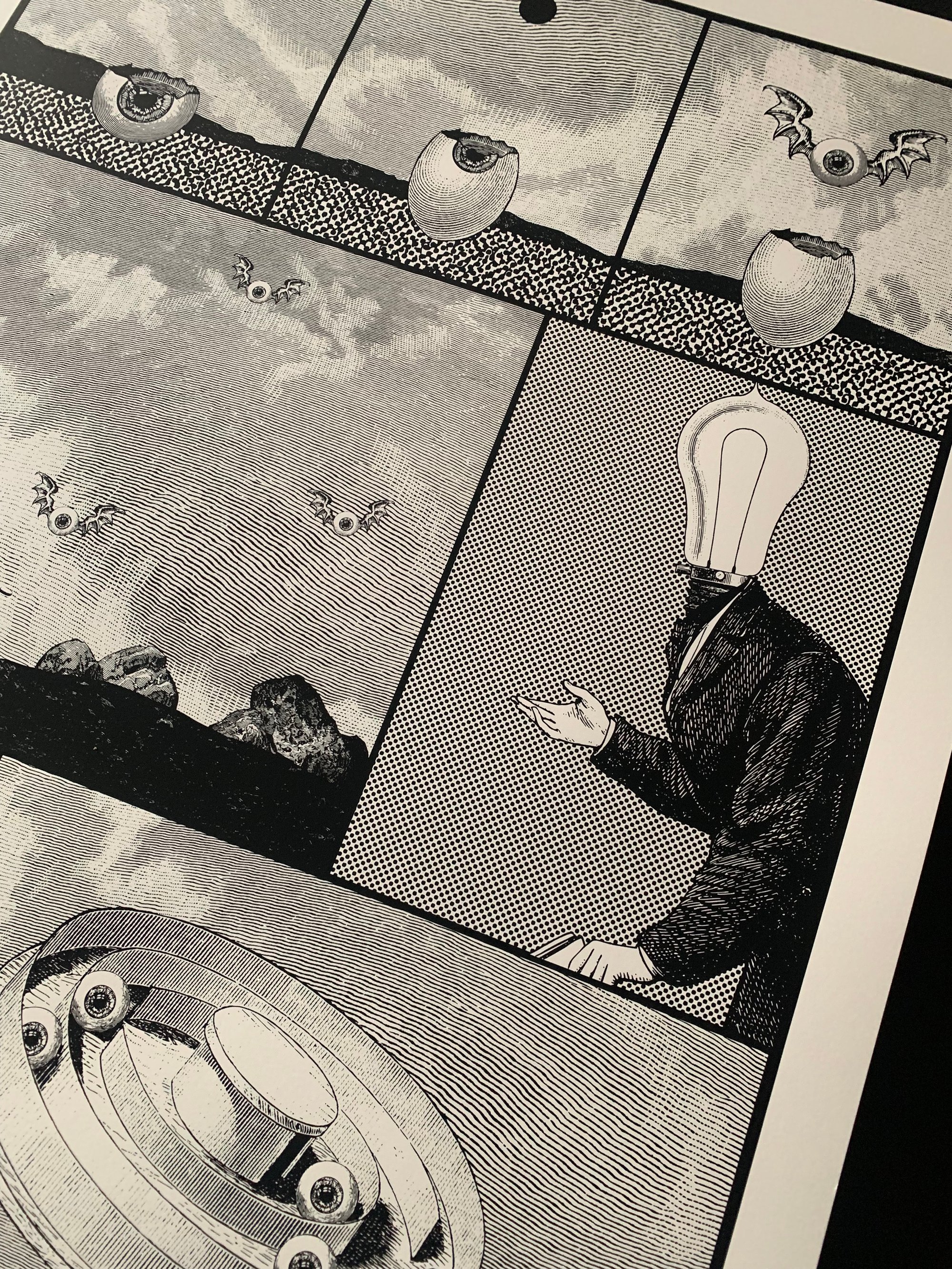 Sérigraphie pour le concert de Protomartyr au Trabendo à Paris le 8 novembre 2025.